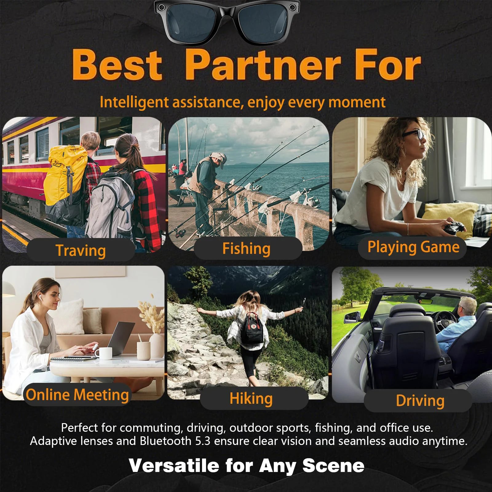 Smart Glasses with 4K AI Camera, BT/WIFI, Voice Assistant, Simultaneous Interpretation, & Object Recognition - 270mAh